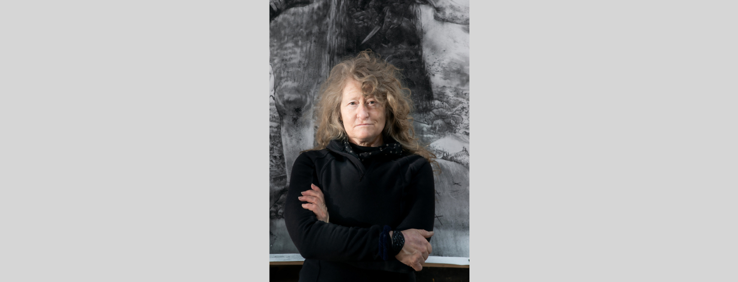 Née en 1964 à Witbank, Diane Victor est une figure majeure de la scène artistique contemporaine internationale. Diplômée de l’Université du Witwatersrand à Johannesburg, elle séjourne entre 1988 et 1989 à la Cité internationale des Arts à Paris et représente en 2015 l’Afrique du Sud à la Biennale de Venise. Elle explore dans son travail les réalités sociales et politiques de son pays natal, marquées par les séquelles de l’apartheid, les violences systémiques, l’injustice et les tensions identitaires. Son travail se caractérise par une grande maîtrise du trait, nourrie par une tradition figurative classique, qu’elle confronte à des matériaux contemporains et éphémères tels que la suie et la fumée.
